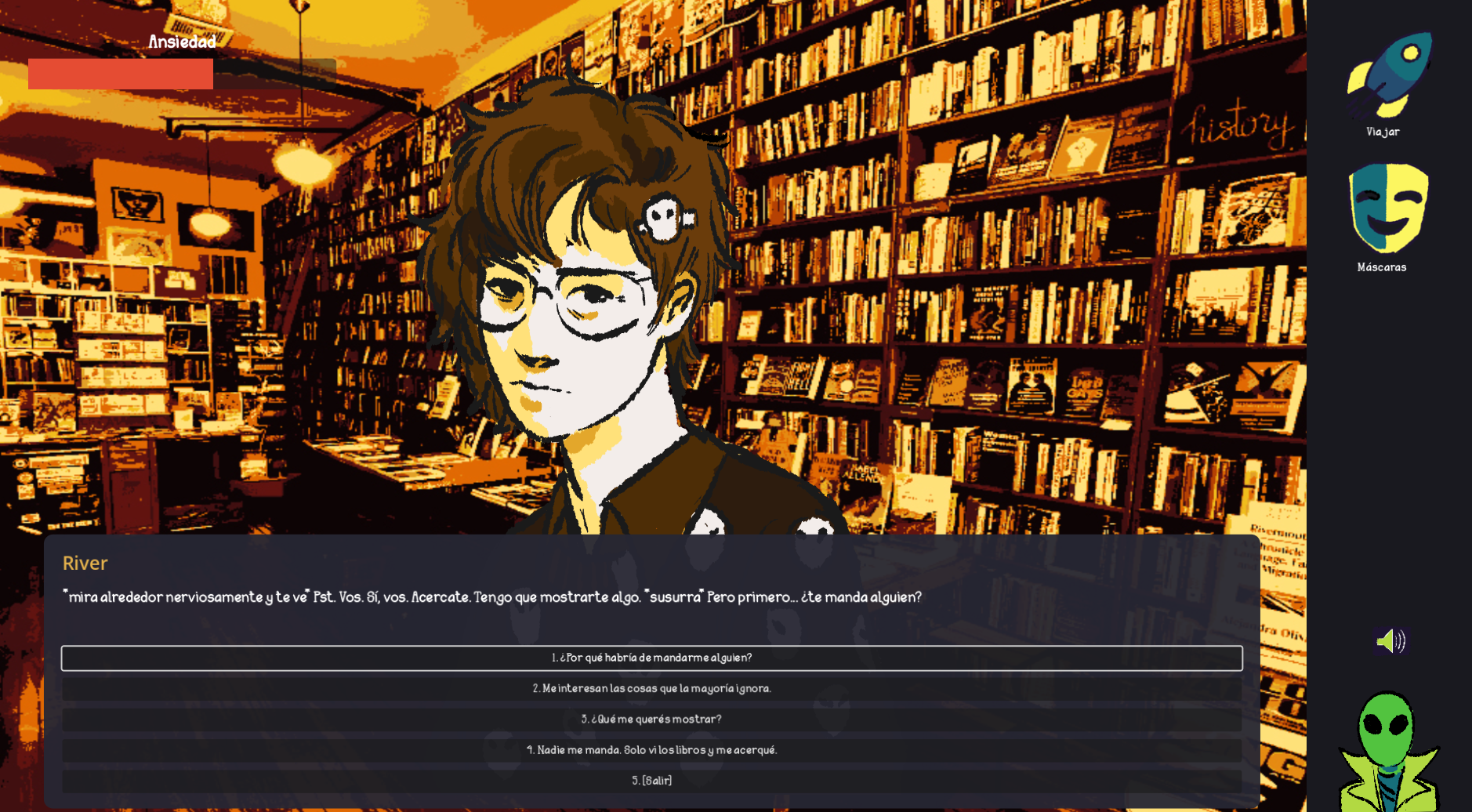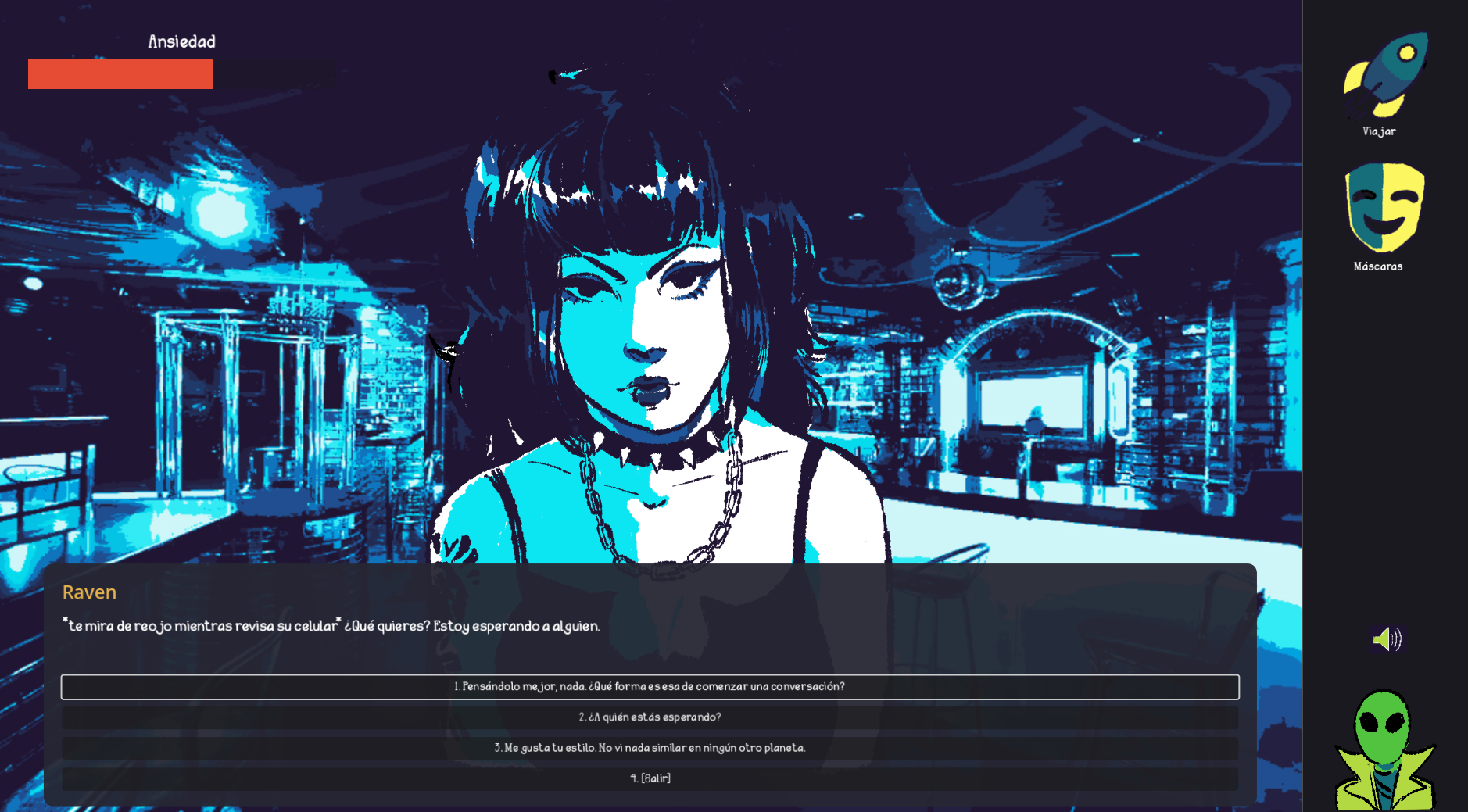 "Coatalien Mask" es un juego de aventura point and click en el que vives la experiencia de ser un alienígena que llega al planeta Tierra con la misión de investigar a la humanidad. Tu objetivo es aprender sobre los humanos, entender cómo encajar y formar amistades genuinas. Sin embargo, tu verdadera identidad alienígena debe permanecer oculta, por lo que utilizas máscaras para esconder tu rostro. A medida que interactúas con distintos humanos con personalidades variadas, consigues nuevas máscaras que te permiten adoptar diferentes personalidades. Al aprender a conectar con cada persona, no solo haces nuevos amigos, sino que desbloqueas más formas de relacionarte con diferentes tipos de personas. Cuanto más comprendes a tus nuevos amigos, más máscaras consigues, cada una representando una forma distinta de interactuar con los demás.